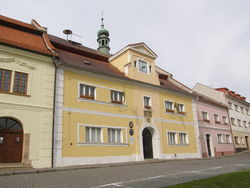 Vznikla při přestavbě zámku v roce 1680, je trojdílná a jak je výše uvedeno nachází se v severozápadní části Velkého náměstí.