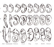 Charles Darwin se při formulování evoluční teorie v pozdějších vydáních knih „O původu druhů“ a „Původ člověka“ odvolával[4] na kresby embryí Ernsta Haeckela, které však byly již jeho současníky označeny za podvod. Vycházely z myšlenek Karla Ernsta von Baera, který tvrdil, že embrya některých obratlovců procházejí stadiem, v němž vypadají všechna dost podobně.[1] Darwin to považoval za důkaz společného původu všech živočichů. Elizabeth Pennisi v roce 1997 publikovala v časopise Science editoriál, ve kterém uvádí, že jde o „jeden z největších podvrhů v biologii“.[5][6]