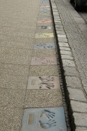 Brněnský chodník slávy, který se nachází před Městským divadlem začal vznikat v září roku 2000, kdy poprvé otiskli své dlaně herci divadla Alena Antalová, Petra Jungmanová, Markéta Sedláčková, Zdena Herfortová, Zdeněk Junák, Karel Janský, Jiří Tomek a Ladislav Kolář.[22] Brněnské herecké hvězdy si své dlaně při otiskování zašpinily hned dvakrát. Poprvé při slavnostním ceremoniálu, poté se vše zopakovalo v zákulisí se speciální hmotou, která zasychá během dvaceti minut. Herci si navíc mohli vybrat barvu svého betonu.[23]