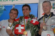 Mistrovství světa 2007 v Kyjevě. Na fotografii vítězná trojce z dlouhé trati. (z leva: Rus Andrey Khramov, Matthias Merz a Nor Anders Nordberg)