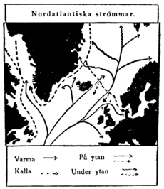 Henrik Mohn vyvinul v pozdním 19. století první dynamický model mořských proudů oceánů. Zde mapa mořských proudů z roku 1904 zobrazují povrchové i hlubinné mořské proudy