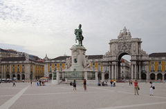 Při pohledu na jezdeckou sochu nelze v pozadí přehlédnout Arco da Victória, monumentální oblouk tvořící přechod mezi Rua Augusta, hlavní tepnou protínající centrum města, a samotným náměstím, kde je citlivě začleněn do samotné zástavby.
