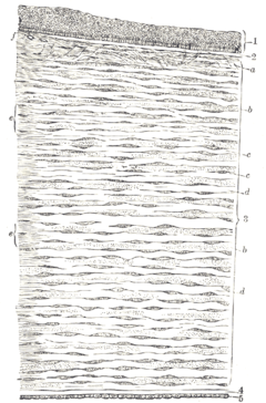 Lidská rohovka je, tak jako u jiných primátů, složena z pěti vrstev. Tyto vrstvy směrem z vnějšku dovnitř jsou:
