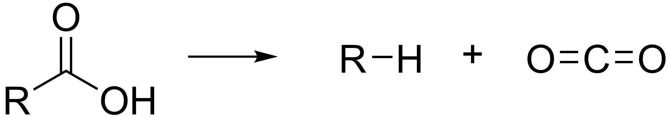 Obrázek + Description: scheme showing a generic decarboxylation reaction