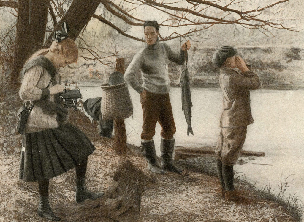 - English: "Every negative can carry the date and title, made on the film at the time. It's all very simple with the Kodak system." Ad on the back cover of the June 22, 1918 Country Gentleman with an illustration that shows the girl writing on the roll film through an opening in the back of the camera. (autographic film)