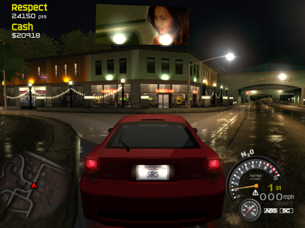 Aktuální snímek počítačové hry + Street Racing Syndicate (GOG.com) + pochází z mého vlastního počítače.
