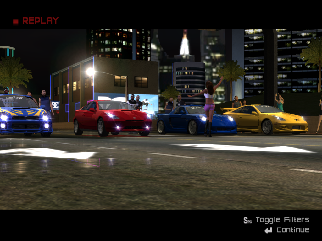 Aktuální snímek počítačové hry + Street Racing Syndicate (GOG.com) + pochází z mého vlastního počítače.