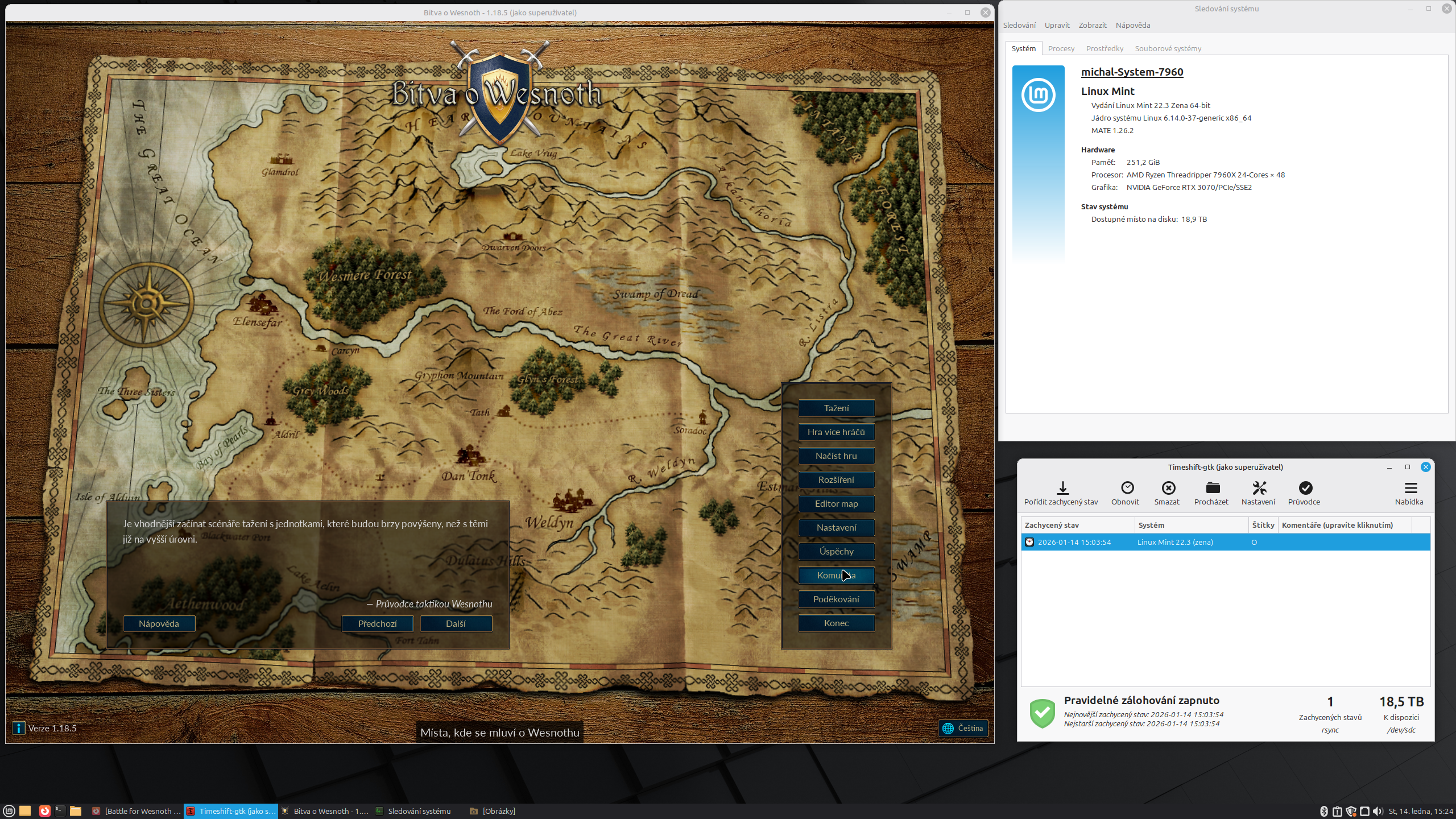 | 15. 1. 2026, 16:36 | Linux_Mint_Zena-Battle_for_Wesnoth-Threadripper_RTX-2026-01-14.png (soubor) | Sysop | 4,27 MB | 1 | |