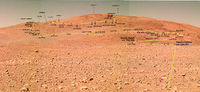 Vpravo je první barevný obrázek Marsu vyvořený panoramatickou kamerou vozítka Spirit. Je to obrázek s největším rozlišením jaký kdy byl pořízen z povrchu jiné planety. „Vidíme panoramatickou mozaiku složenou ze čtyřikrát tři obrázky kamery“, řekl designér kamery Jim Bell z Cornellu. Na tomto obrázku je 12 milionů bodů (4 000 × 3 000). Toto je však jen vrchol ledovce, protože tento obrázek, získaný 6. ledna 2004 je jen osmina z panoramatu pořízeného touto kamerou a není stereoskopický.