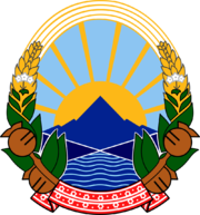 Republika Makedonie i po vyhlášení nezávislosti v roce 1991 stále používá státní znak z dob, kdy byla součástí SFRJ.