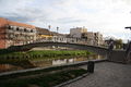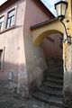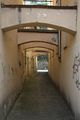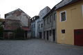 Vchod do židovské čtvrti. Vpravo je nábřeží řeky Jihlavy, dům v ulici Leopolda Pokorného čp. 114 s podloubím |