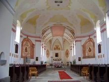 Interiér poutního kostela Panny Marie Sněžné ve Svatém Kameni