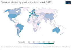 Španělská energetika zaznamenala ráno 30.prosince 2009 rekord, energie z větrných elektráren tam pokryla přes 54 procent celkové poptávky po elektřině. To odpovídalo výkonu přes 10.000 megawattů.[7]