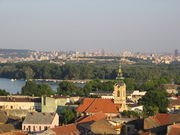 Zemun v popředí, zbytek Bělehradu v pozadí