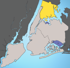 | + | [[Soubor:Bronx Highlight New York City Map Julius Schorzman.png|thumb|240px|Poloha Bronxu (žlutá barva)]] | ||