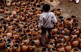 Hrnčíř na trhu (Guatemala)