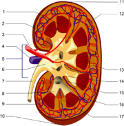 2. juxtamedulární, ze kterých odcházející arterioly jdou ve formě přímých cév (vasa recta) do hloubky dřeně a tu zásobují krví. Její zvýšené prokrvení způsobí pokles osmolalita|osmolality dřeně (tzv. vymývací efekt) a tím poklesne i koncentrační schopnost ledvin (tlaková diuréza).