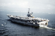 Její stavba byla zahájena 2. srpna 1954 v loděnici Newport News Shipbuilding v Newport News ve Virginii. K jejímu spuštění na vodu došlo 29. září 1956, do služby byla zařazena 10. srpna 1957. Během své služby se zúčastnila operací během války ve Vietnamu a i v dalších letech působila především v Tichém oceánu. Ke konci své služby působila i v Indickém oceánu a Perském zálivu. Hrála také v televizních seriálech The Six Million Dollar Man a Letka černých ovcí a ve filmech Top Gun, Star Trek IV: Cesta domů (zde ztvárnila USS Enterprise) a Let vetřelce. Ze služby byla vyřazena 10. července 1993, poté byla odstavena. Po vyškrtnutí z rejstříku námořních plavidel v roce 2004 byla nabídnuta případným zájemcům pro provozování muzea. Protože žádný zájemce nedokázal splnit požadavky námořnictva, bylo v roce 2012 rozhodnuto, že loď bude sešrotována,[1] k čemuž došlo roku 2017.[2]