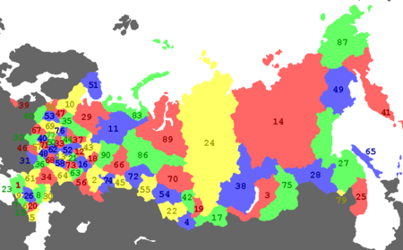 | 87 | CHU | Čukotský (Чукотский) | Anadyr (Анадырь) | Dálnovýchodní | Dálnovýchodní |