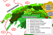 Vnější Západní Karpaty, Levočské vrchy vyznačeny červeným polem