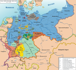 Říšská ústava z roku 1871 zdůrazňovala monarchistickou povahu státu. Budoucnost Německa měla být tedy rozhodujícím způsobem závislá na osobě císaře. Silné postavení bylo přiřčeno Prusku, na které v novém státě připadaly dvě třetiny rozlohy a obyvatelstva. Založením Německé říše vznikl ohromný jednotný ekonomický prostor, což společně s francouzskými válečnými reparacemi připravilo půdu pro razantní hospodářský růst Německa.