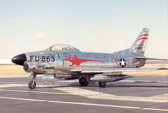F-86 byl přijat do služby v americkém letectvu roku 1949. Známým se stal zejména pro své nasazení v Korejské válce. Výkony sovětského typu MiG-15 byly pro síly OSN nepříjemným překvapením a donutily USAAF k nasazení nových F-86 v Koreji. Oblast častých střetů s MiGy se dnes označuje jako „alej MiGů“. Pákistánské F-86 také bojovaly v Indicko-pákistánské válce v roce 1965.