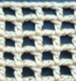 • Také filetovým háčkováním vzniká síť se čtvercovými otvory (snímek vpravo dole), která se často kombinuje s jinými vzory na háčkované krajce.