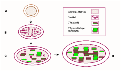 Schéma chloroplastu, pod číslem 11 je chloroplastová DNA
