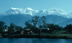 Severně od Mahabharátského hřebenu leží hornatý region dosahující do výšek 4 000 metrů, kde začíná Velký Himálaj. V jeho středních výškách subtropické lesy přecházejí v pás mírných listnatých a smíšených lesů. Nad listnatými lesy leží subalpínské jehličnaté lesy a nad nimi alpínské keře a louky, které ve vyšších polohách přecházejí v tundru. Alpínské louky jsou letním domovem ohroženého irbise (levharta sněžného).
