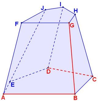 Mnohostěn ABCDEFGHIJ s vyznačenými hranami AB, CD, BG