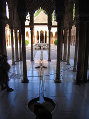 Ve Španělsku proběhla ve 13. století reconquista, po níž se vliv islámu omezil na malé území nedaleko Granady. Na tomto území pak vlastně pokračoval vývoj, který byl započat v umajjovském období, přetrvaly zde i klasické rysy, jako je značné množství sloupů, velké kopule a velmi propracovaná dekorace. Na tomto území takto vznikl jedinečný komplex Alhambra, který i díky svému prostorovému uspořádání patří mezi vrcholná díla světové architektury. I v této oblasti se projevila snaha budovat zahrady, které byly spojeny s využíváním vodních ploch.