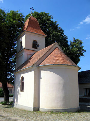 - Kříž z dubového dřeva z roku 1810. Je 5,5 metrů vysoký a zdobený vyřezávanými sakrálními motivy. Původně stával u lesa Chrást, ale pak zde byla vztyčena kopie a originál přenesen ke kapli Navštívení Panny Marie na návsi.