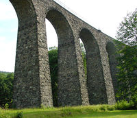 - Druhý, menší viadukt stojí poblíž myslivny nad autobusovou zastávkou v Novině. Jeho délka je 127 metrů, má deset opěrných sloupů a výšku 17 metrů.