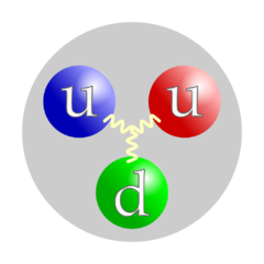 - Proton p(+) a baryonové rezonance N(+) jsou složeny z kvarků u, u, d