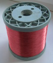 Cívka s lakovaným měděným drátem, připravená na založení do navíječky