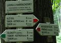- Níže po proudu u chatové oblasti „Riviera“ a lesní restaurace „Harachovka“ - oblouková Harrachova lávka z roku 1941 (tu původní z roku 1929 strhla 16.3.1940 velká voda a kry) – součást turistické cesty (původně „Harrachovy stezky“ budované od roku 1895) do Příběnic po levém břehu Lužnice.