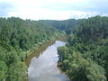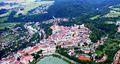 Lužnice v Táboře, v pozadí vpravo klášter Klokoty (pod ním v údolí řeka),v popředí hráz nádrže Jordán, 2007 |