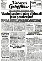 Titulní strana Večerního Českého Slova 22. září 1938