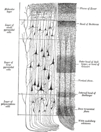 mozková kůra je tvořena 6 vrstvami, v každé z nich převládá určitý typ neuronů. Směrem od povrchu hemisféry dolů k bílé hmotě to jsou:I. vrstva - molekulární (plexiformní) je nejslabší