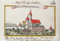 Prudnický hrad v 18. století podle Friedricha Bernharda Wernera