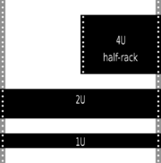 Poloviční racková jednotka (half-rack) obvykle popisuje celek, který zapadá do určitého počtu rackových jednotek, ale obsadí pouze polovinu šířky 19 palcového racku (tj. 9,5 palce, resp. 241 mm). Poloviční šířka se používá v případě, že zařízení nevyžaduje plnou šířku racku, ale může vyžadovat více, než 1U výšky. Například DVCAM deska s rozměrem „4U half-rack“ obsadí 4U (7 palců) výšky a 9,5 palce šířky. Teoreticky mohou být vedle sebe upevněny dvě 4U half-rack desky.