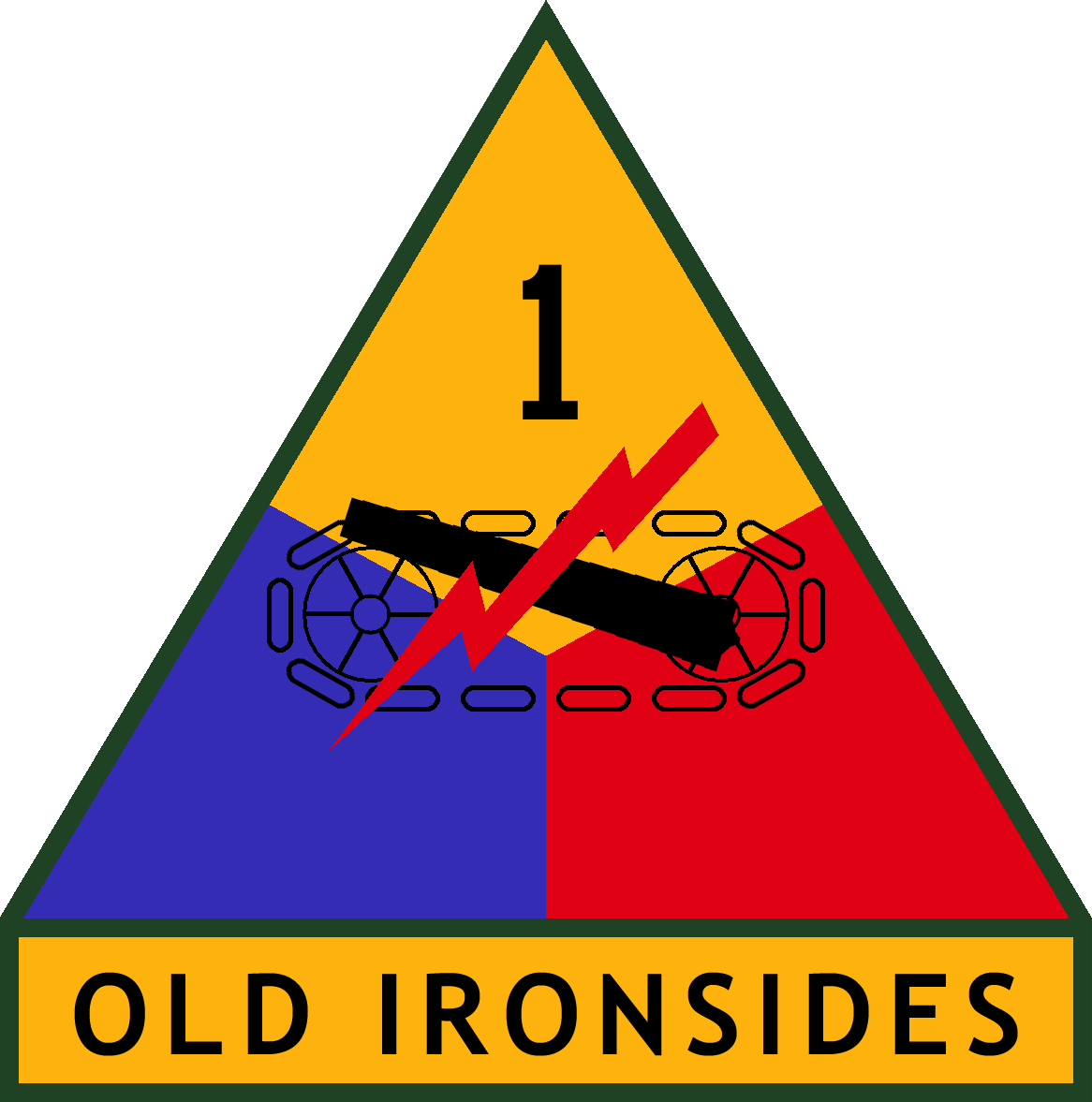 Logo + English: US Army 1st Armored Division Shoulder Sleeve Insignia