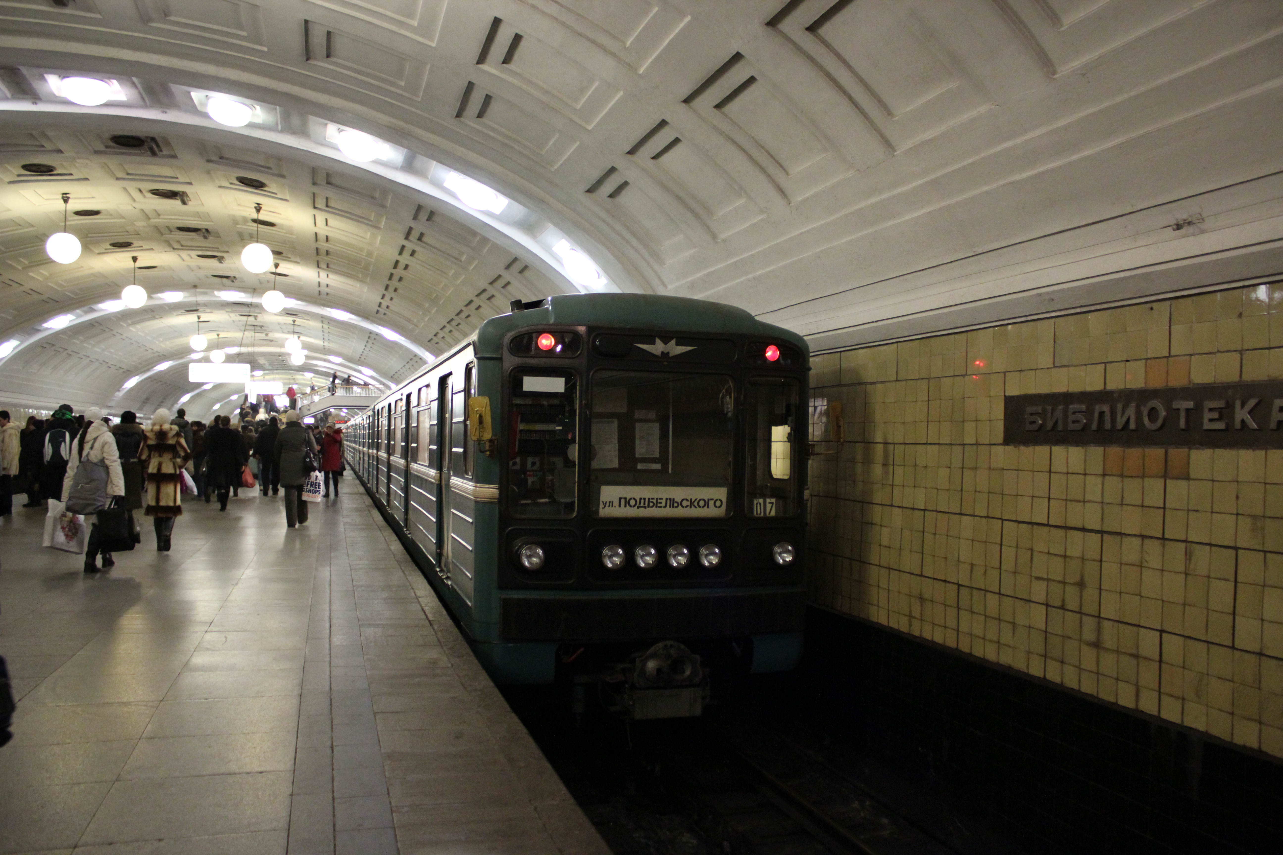 Fotografie + Description: Metro car type 81-717 at Biblioteka Imeni Lenina station.