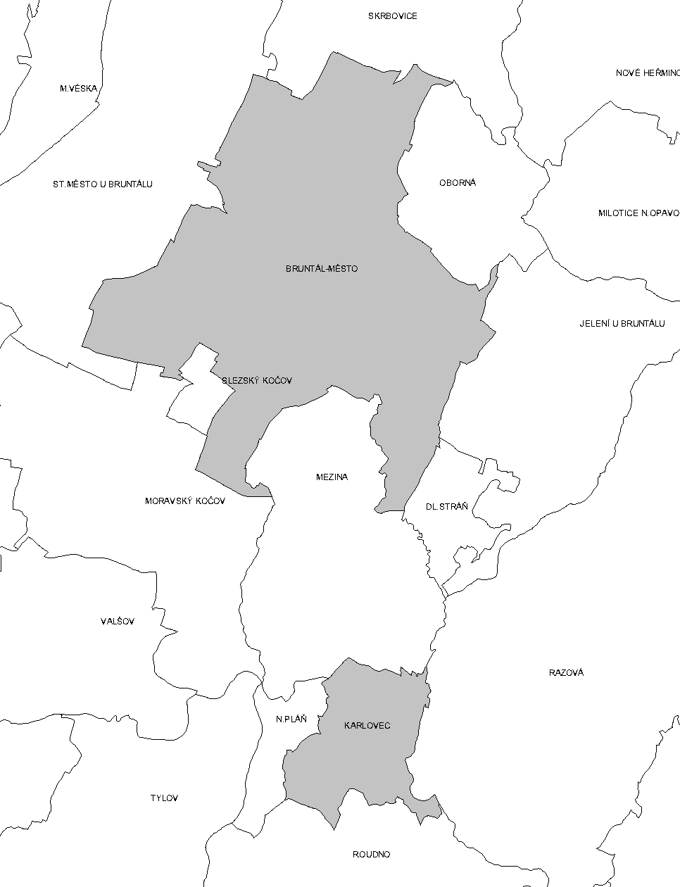 Fotografie + Čeština: Katastrální členění Bruntálu