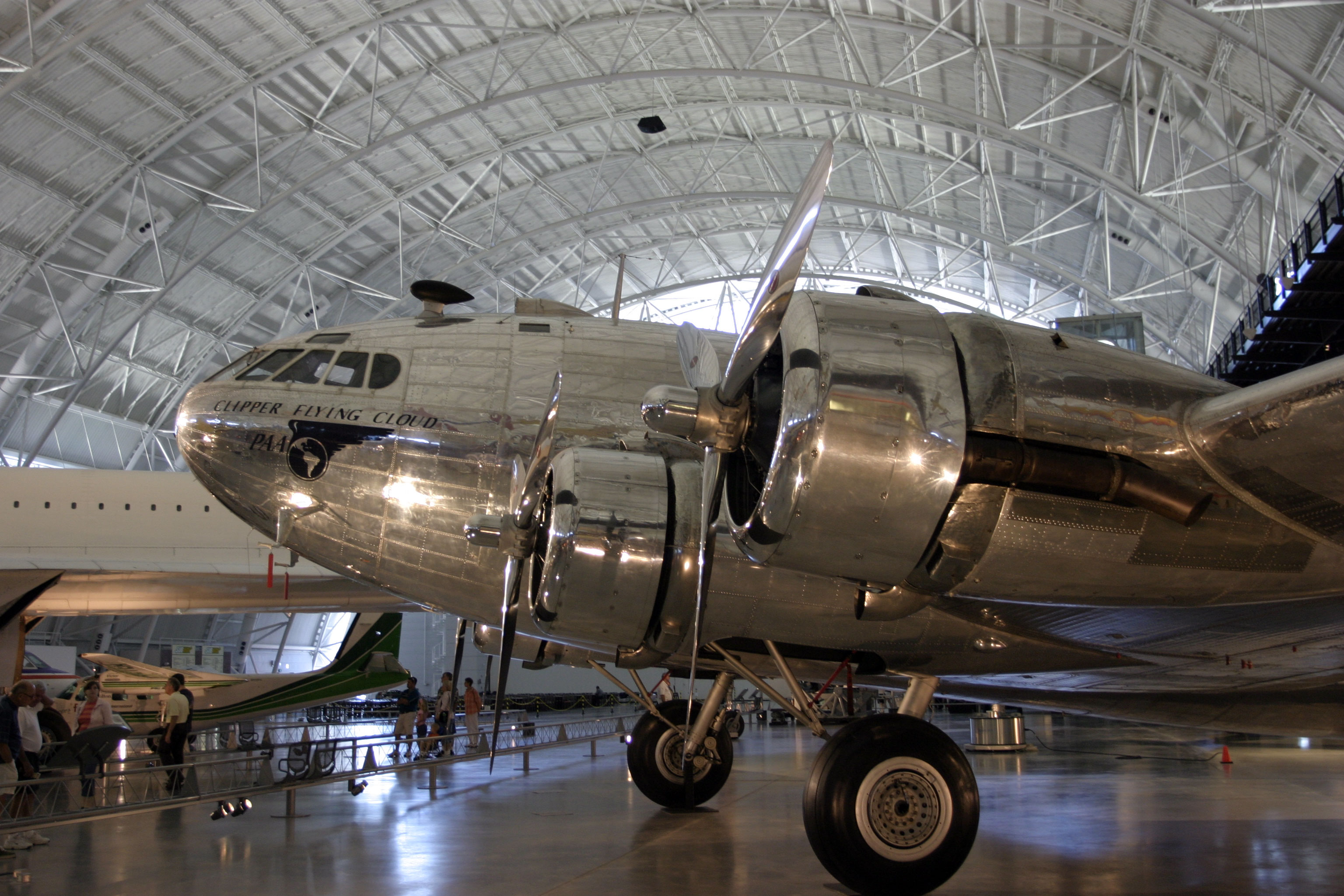 Fotografie + English: A Pan Am-labeled Boeing 307 Stratoliner, on display at the Steven F. Udvar-Hazy Center.