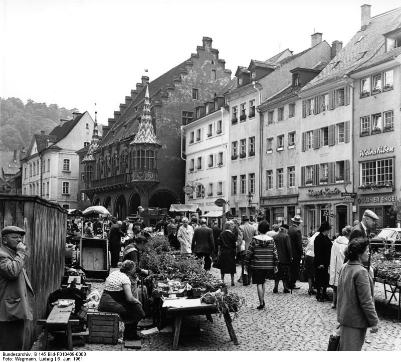 Soubor:Bundesarchiv B 145 Bild-F010469-0003, Freiburg-Breisgau, Markt am Münsterplatz.jpg