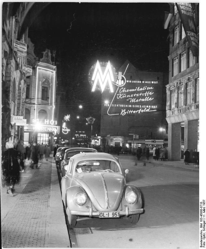 Soubor:Bundesarchiv Bild 183-45000-0710, Leipzig, Grimmaische Straße, Nacht.jpg