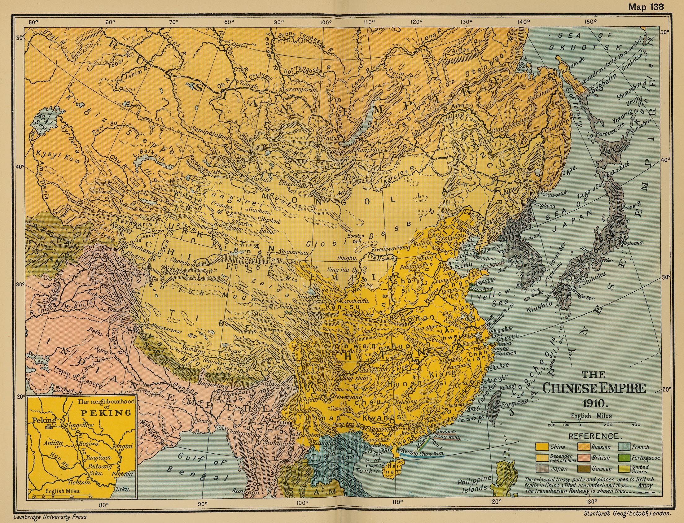 Mapa + Čeština: Rozsah Čínské říše v roce 1910.