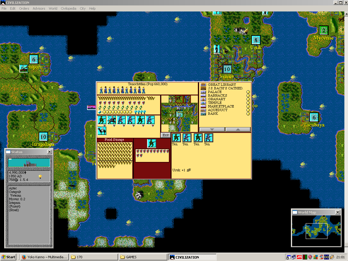 Aktuální snímek počítačové hry + Civilization 1.0 for Windows + pochází z mého vlastního počítače.