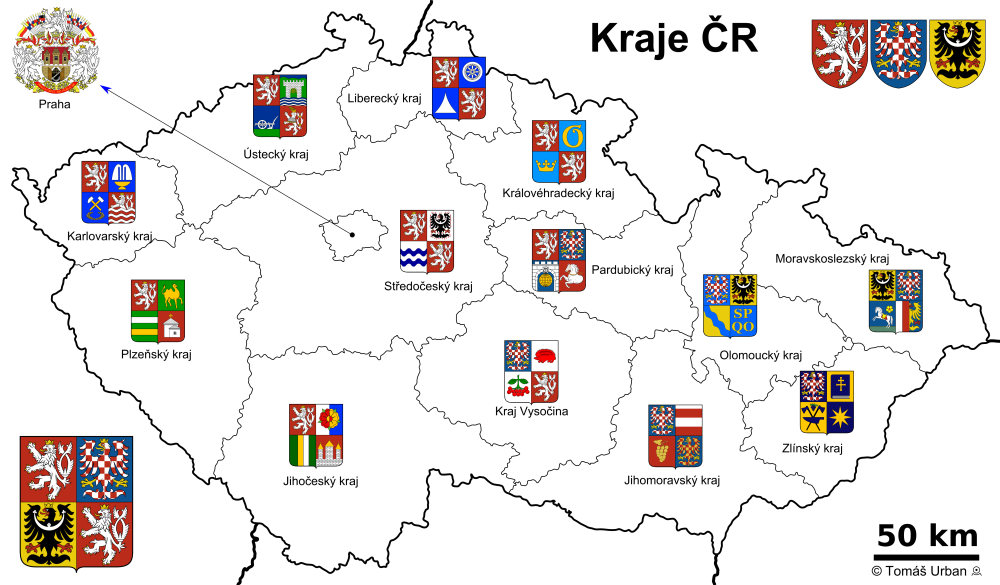 Mapa + Čeština: Přehled krajů České republiky a jejich znaky. Znaky současných krajů České republiky. Kraje České republiky.